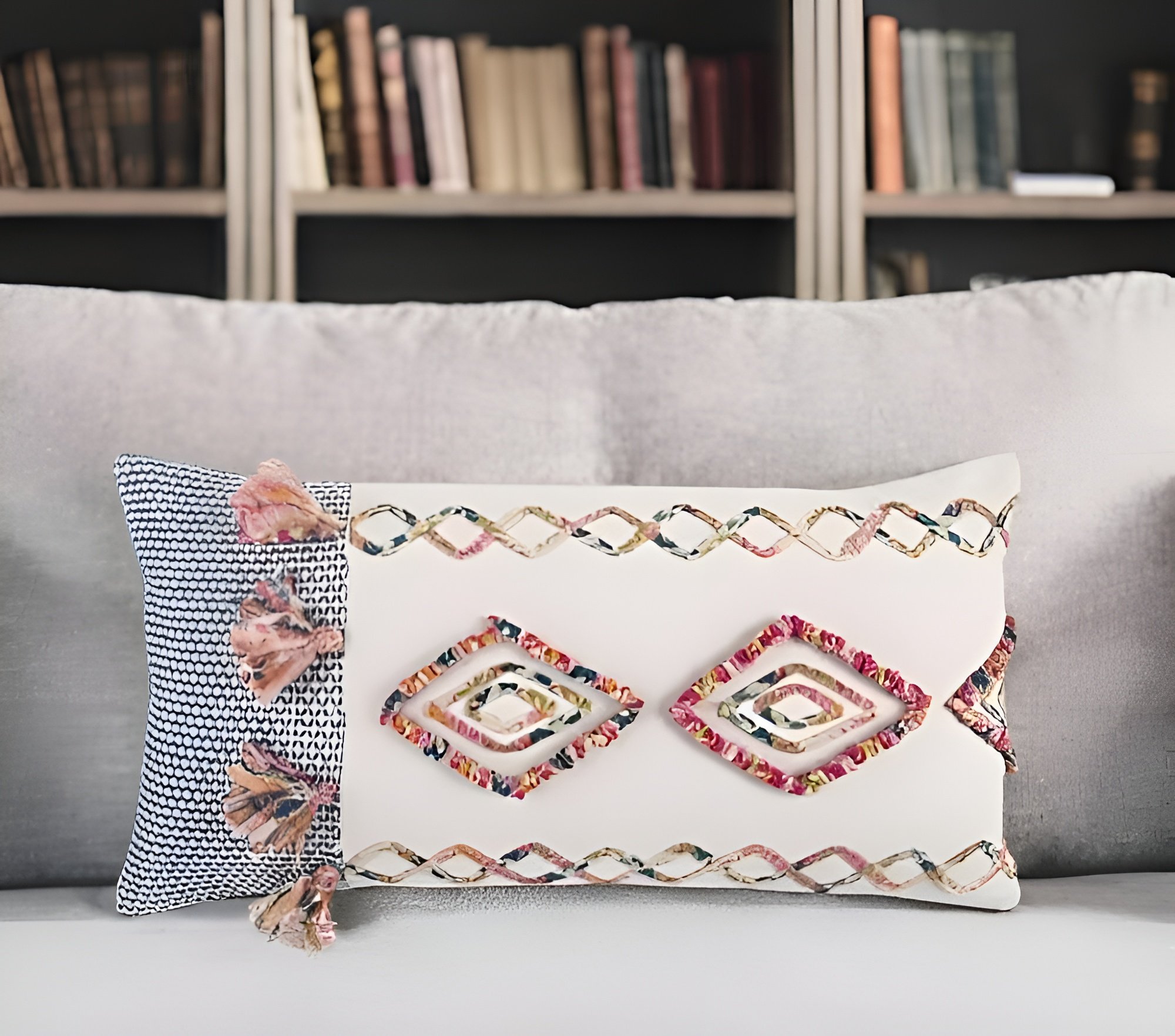 14" X 26" Natural Navy Pink Cotton Throw Pillow