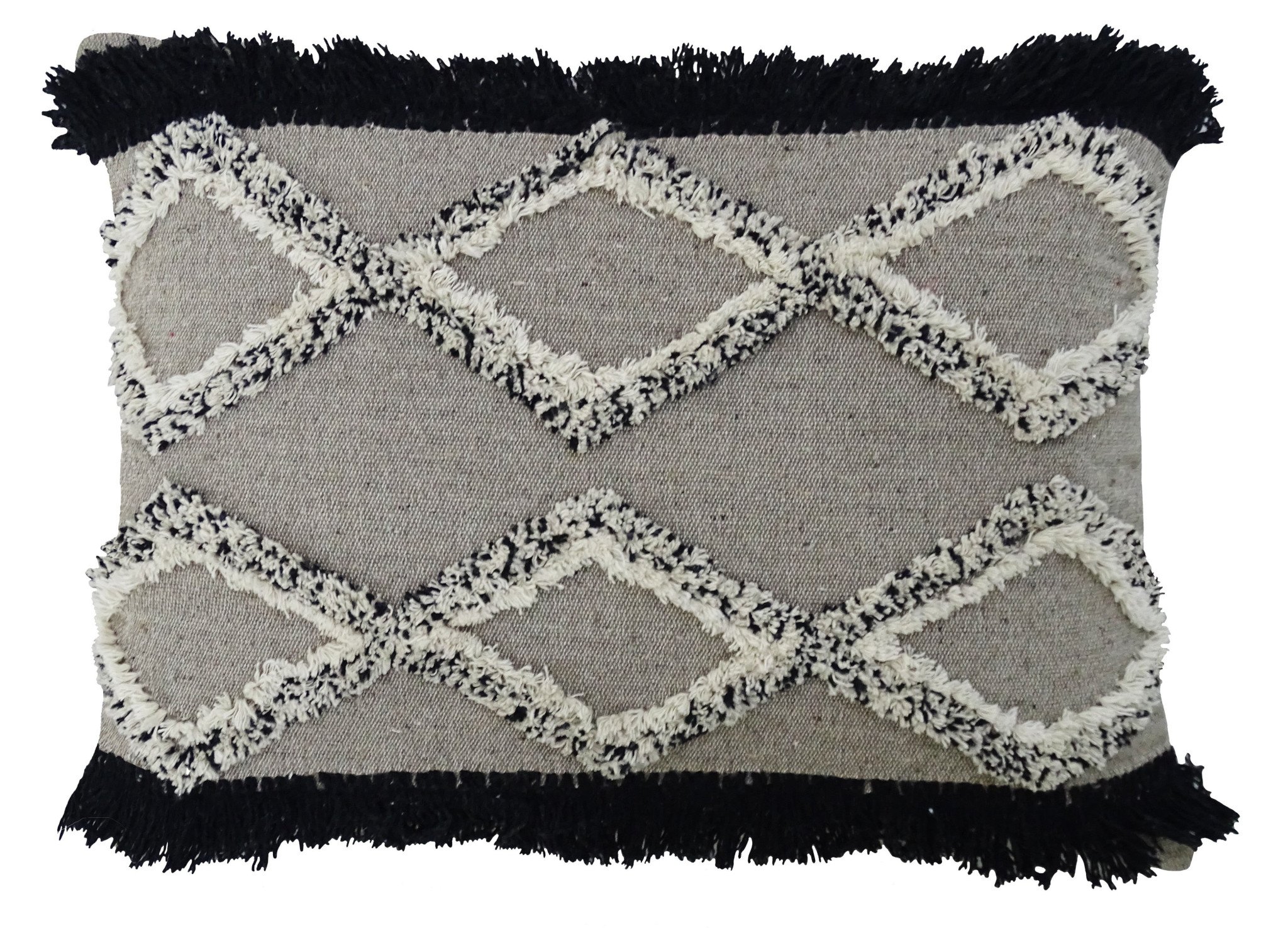 Home > 16" X 22" Black And Gray Diamond Handmade Cotton Blend Throw Pillow With Fringe