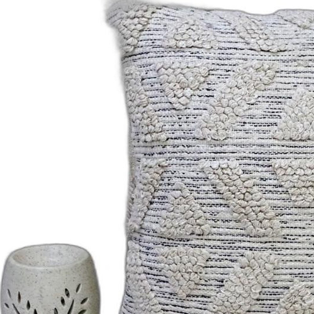 Home > 22" X 22" Off White Geometric Zippered Handmade Cotton Blend Throw Pillow With Tassels