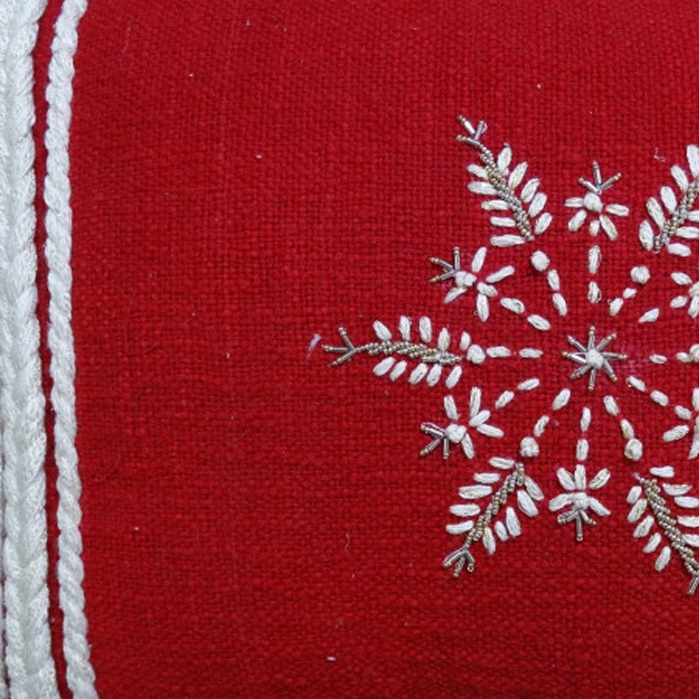 14" X 20" Red Zippered Cotton Blend Christmas Snowflakes Throw Pillow With Embroidery