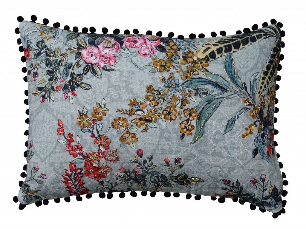 This 14" x 20" green and yellow floral zippered handmade cotton blend throw pillow with pom poms will add a beautiful decorative accent to your decor. For anyone that loves to decorate or accent their space with color and texture. Decorative pillows are a great way to change up the look and feel of your space easily and quickly. 10" H x 14" W x 20" D