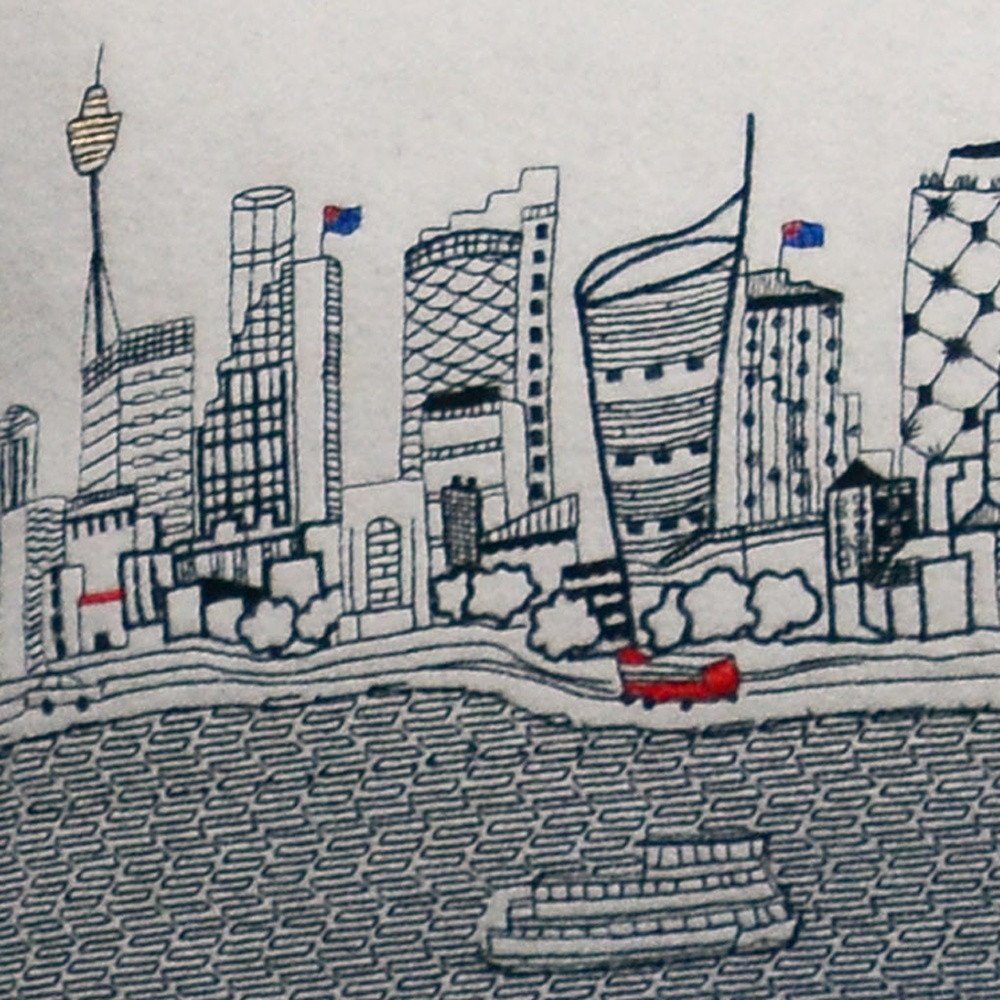 Showcase one of the most famous cities in the world with our Sydney Daylight Skyline King Size Lumbar Decorative Pillow. This daylight view of Sydney from the Pacific Ocean, is a stunning way to represent one of the most beautiful and visited cities in the world. The gorgeous art features famous architecture and landmarks including the Opera House and Harbour Bridge, rendering a modern whimsical way to bring this iconic cityscape to life. Made of a wool/nylon blend, this high quality stitched decorative pillow features black on white embroidered artwork mixed with pops of color that highlight important and recognizable icons from this fabulous city. This pillow makes a great gift, decorative accent and conversation piece. 14-inch H x 46-inch W x 4-inch D