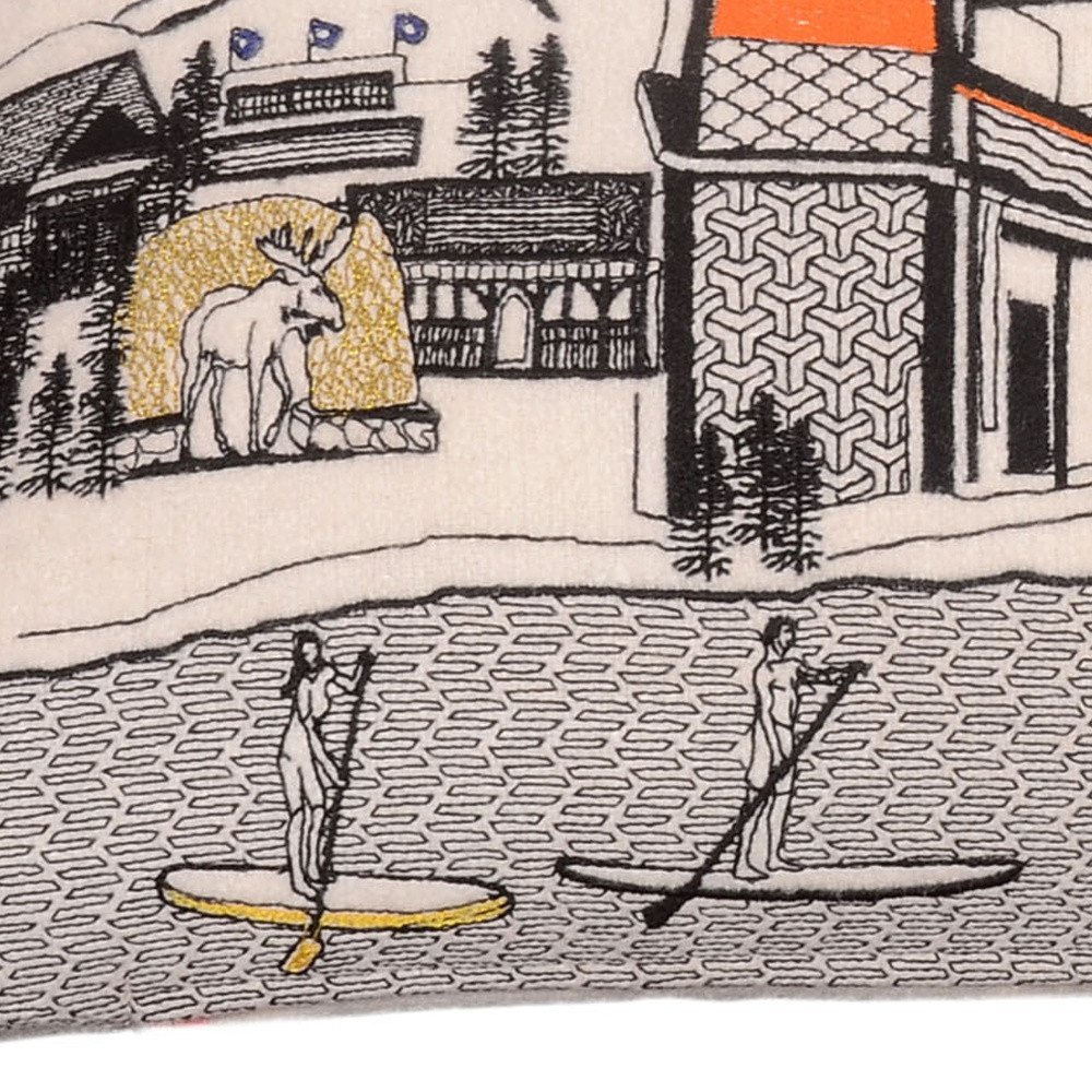 Showcase this famous city, with our Jackson Daylight Skyline Standard Size Lumbar Decorative Pillow. The daylight view of Jackson, is picture perfect. The gorgeous art features many famous landmarks and references for this destination city, rendering a modern whimsical way to bring this iconic cityscape to life. Made of a wool/nylon blend, this high quality stitched decorative pillow features black on white embroidered artwork mixed with pops of color that highlight important and recognizable icons from this popular Wyoming city known for its outdoor sports. This pillow makes a great gift, decorative accent and conversation piece. 14-inch H x 25-inch W x 4-inch D