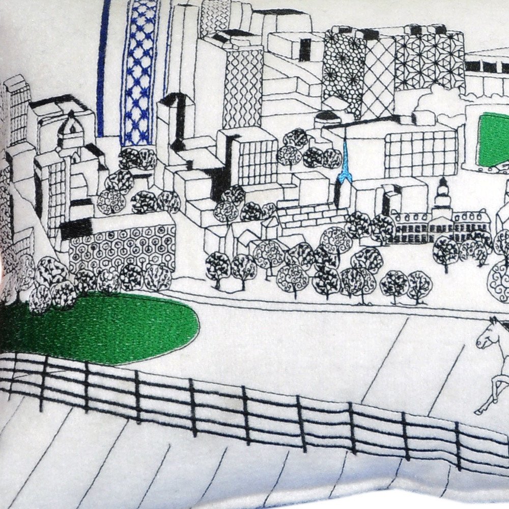Showcase this famous city, with our Lexington Daylight Skyline Standard Size Lumbar Decorative Pillow. The daylight view of the Lexington, is picture perfect. The gorgeous art features many famous landmarks and references for this destination city, rendering a modern whimsical way to bring this iconic city to life. Made of a wool/nylon blend, this high quality stitched decorative pillow features black on white embroidered artwork mixed with pops of color that highlight important and recognizable icons from this popular city. This pillow makes a great gift, decorative accent and conversation piece. 14-inch H x 25-inch W x 4-inch D
