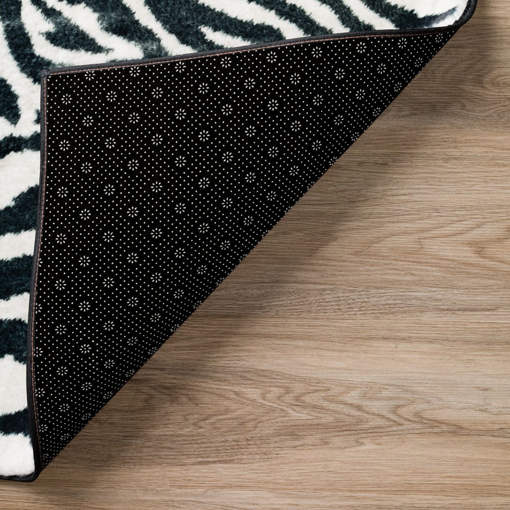 Add some artistry to your room with this 3' x 5' Black and White Zebra Print Shag Handmade Non Skid Area Rug. This rectangle shaped rug features a animal print design in black to give it visual interest. A classic shape marries with good looking design for your space The coloration of this rug infuses an updated and modern vibe into your space. The retro shag construction of this luxurious rug will provide a soft and comfortable barrier to color tile and hardwood floors. Place this area rug against a hardwood or tile floor and it will enliven your living space with style and sophistication. 0.86" H x 36" W x 60" D