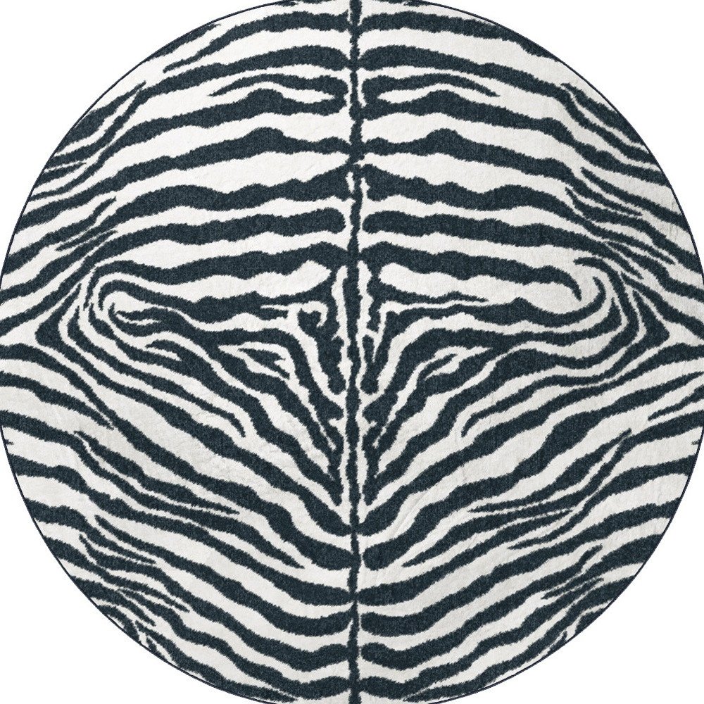 Add some artistry to your room with this 8' x 8' black and white zebra print round shag handmade non skid area rug. This geometric round shaped rug features a animal print pattern in black that combines a good looking print with a unique and updated shape. The mix of shape, color, and design gives this rug refreshing visual interest. The coloration of this rug infuses an updated and modern vibe into your space. The retro shag construction of this luxurious rug will provide a soft and comfortable barrier to color tile and hardwood floors. Area Rugs help to give warmth and sense of home to your space. 0.86" H x 96" W x 96" D