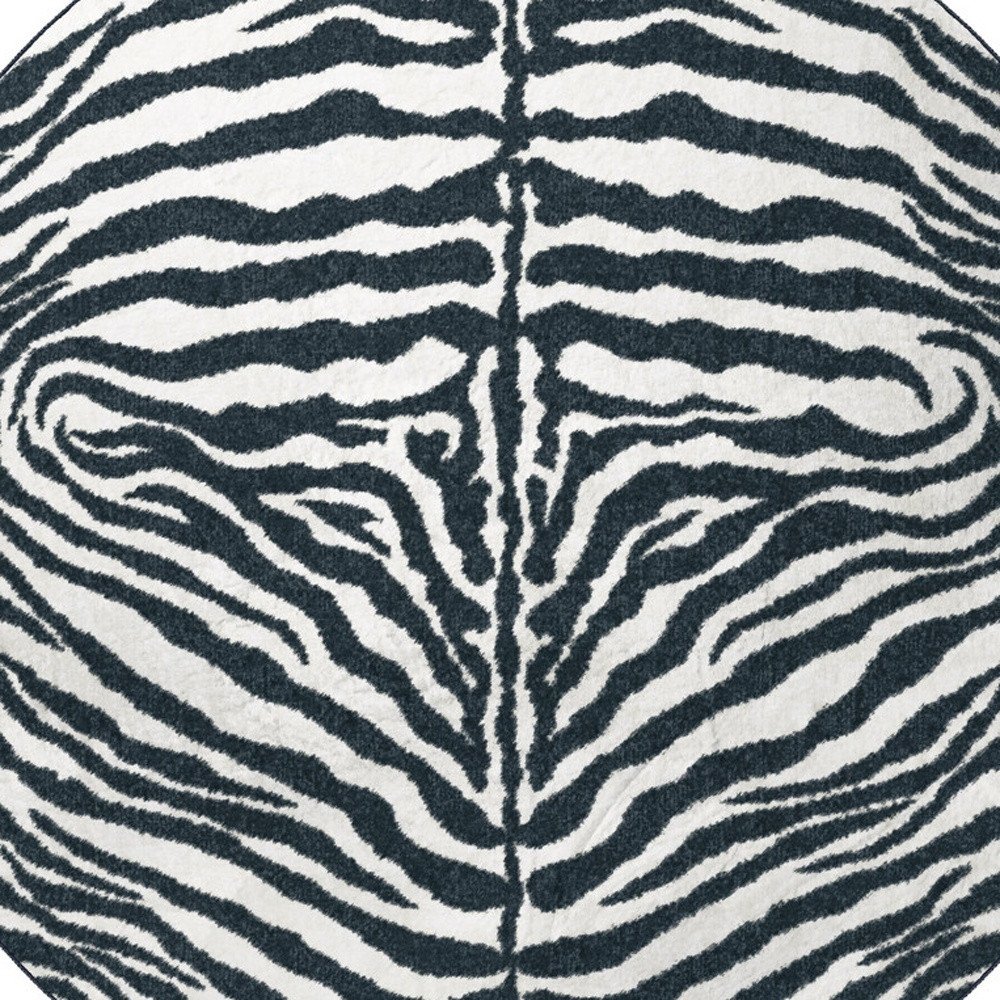 8' X 8' Black and White Zebra Print Round Shag Handmade Non Skid Area Rug