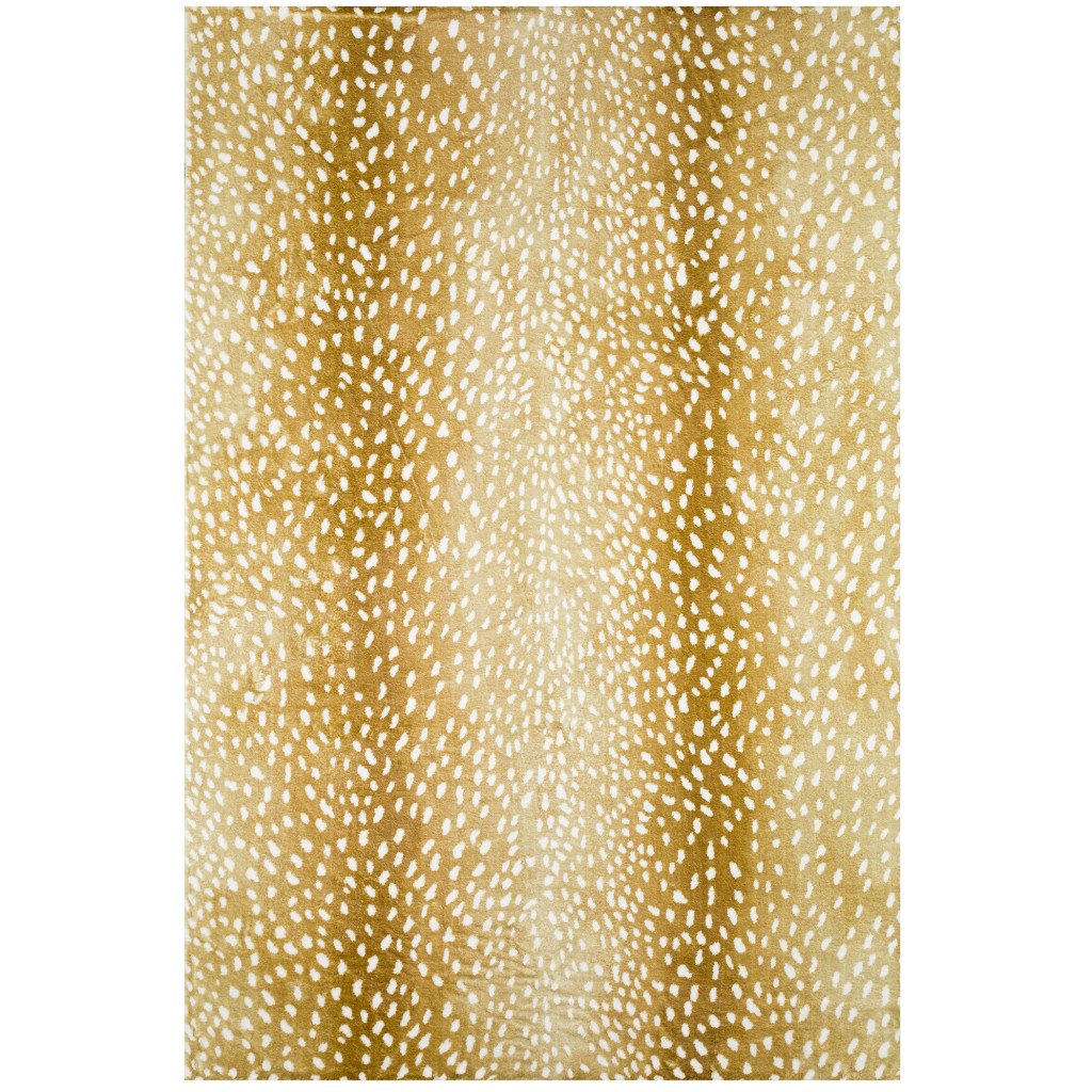 Set an inviting tone in your space with this 3' x 5' gold animal print shag handmade non skid area rug. This rectangle shaped rug features a animal print design in gold to give it visual interest. A classic shape marries with good looking design for your space The retro shag construction of this luxurious rug will provide a soft and comfortable barrier to color tile and hardwood floors. Area Rugs help to give warmth and sense of home to your space. 0.86" H x 36" W x 60" D