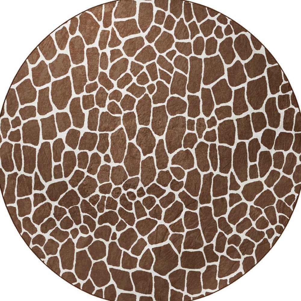 8' Brown and Ivory Round Animal Print Handmade Non Skid Area Rug
